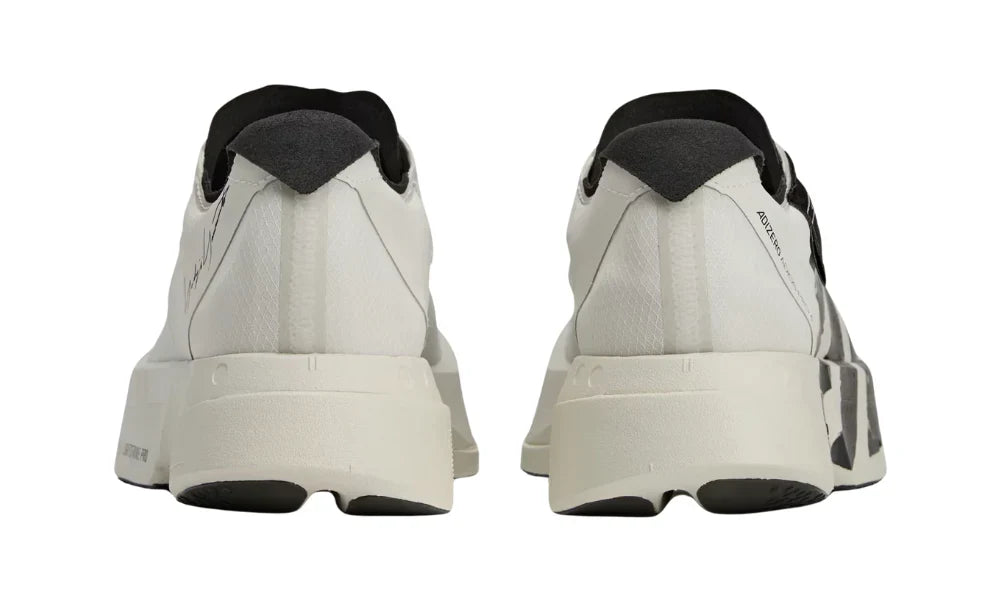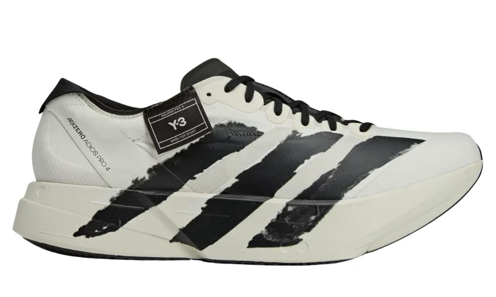 The Y-3 Adios Pro 4 are an elevated take on the pinnacle shoes from adidas Running. Built to break long-distance records, these running shoes have a stretch mesh upper and feature ultra-lightweight, double-layered Lightstrike Pro midsole cushioning and ENERGYRODS underfoot for maximum energy return, stability and propulsion. They have a LIGHTTRAXION rubber outsole for reduced weight and superior traction. All the technologies come together so you can go farther, faster. A Y-3 badge and Yohji Yamamoto signature graphic provide the finishing touches on opposite sides of the collar.