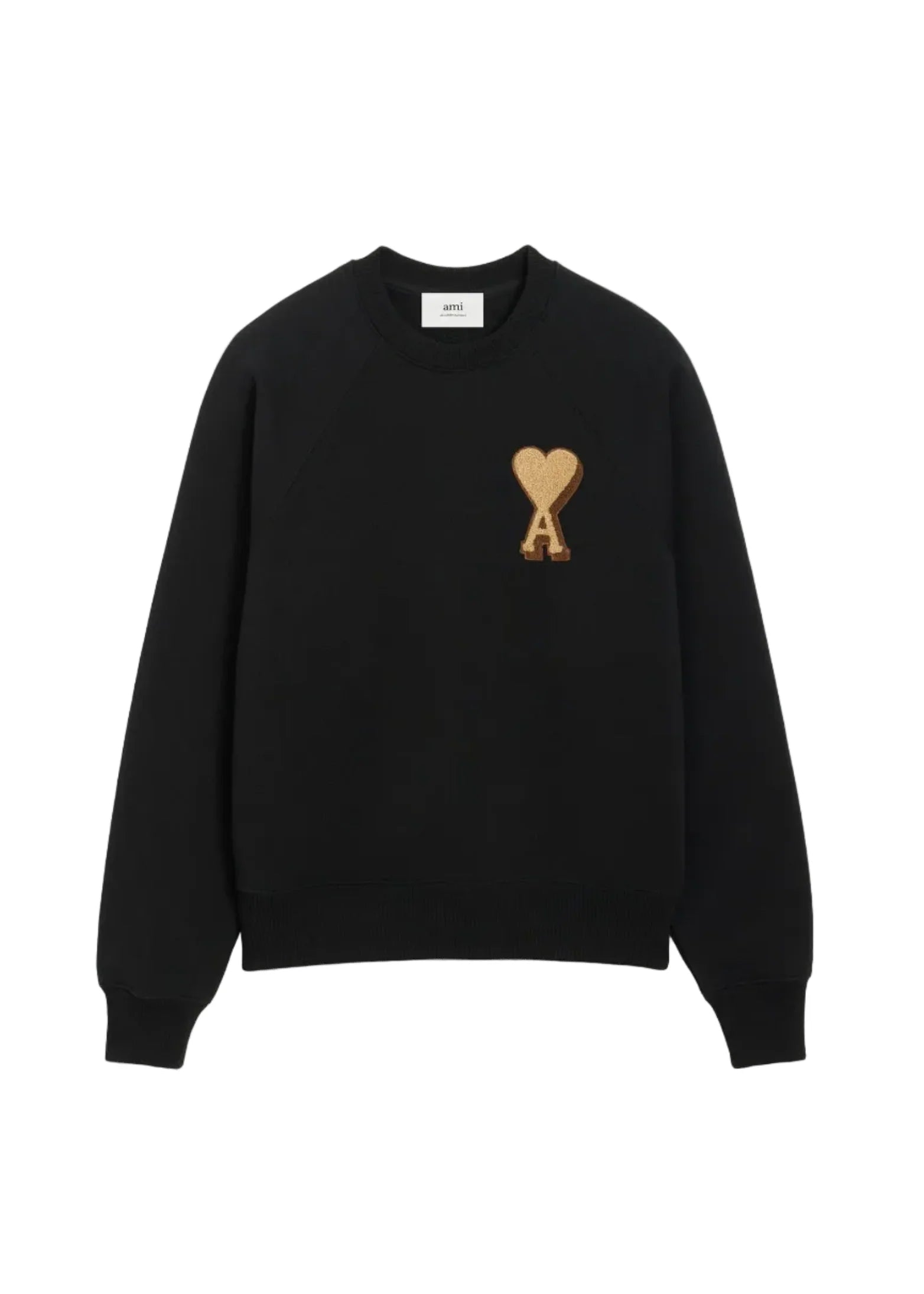 Ami de Coeur sweatshirt in thick, unbrushed fleece. Unisex product . Boxy fit. Raglan sleeves . Contrasting Ami de Coeur terry patch. Tone-on-tone "ami" embroidery below the back neckline. Center back length 61cm (size XS). Center back length 65cm (size M).