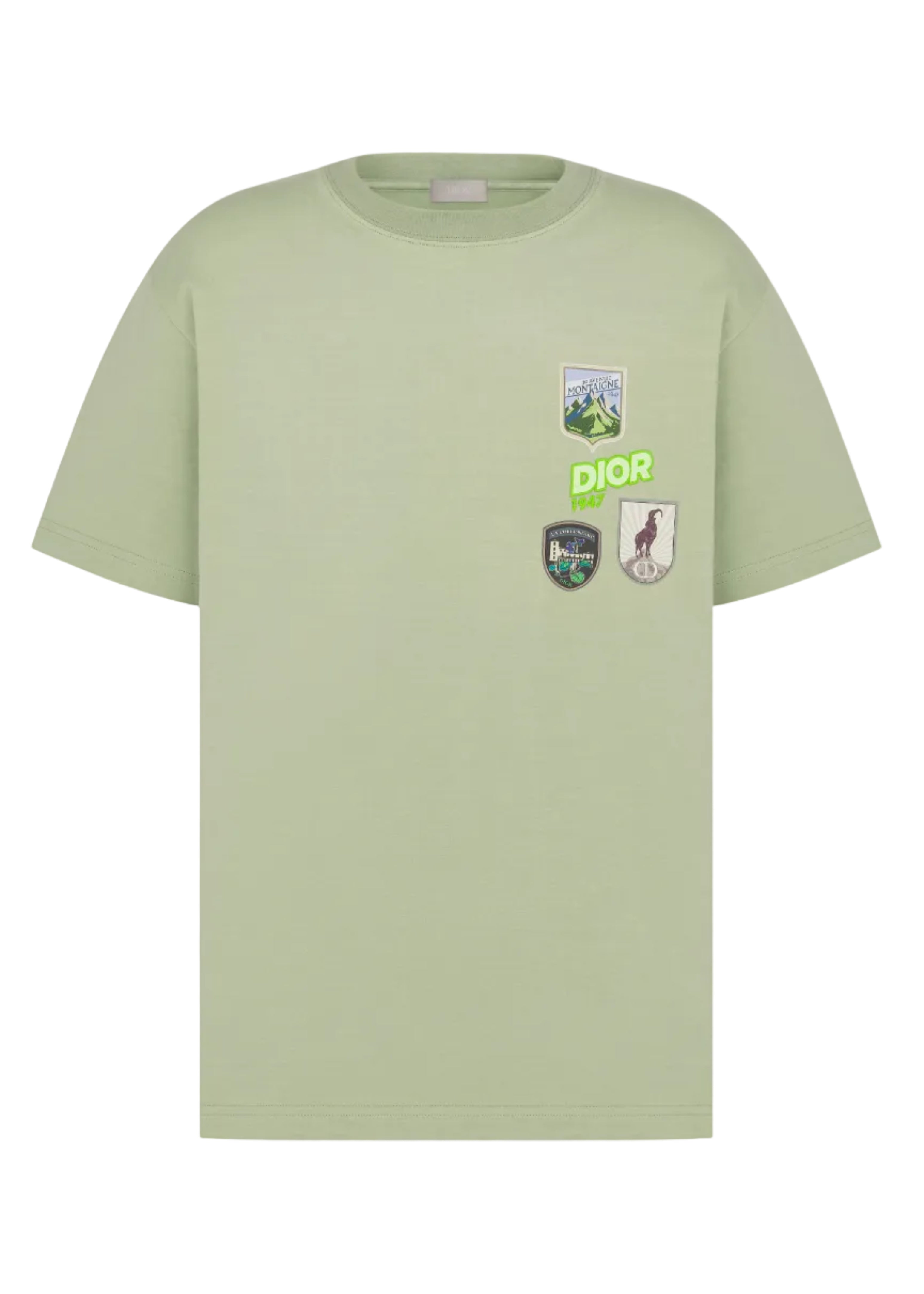 The Dior Mountain T-shirt is adorned with multicolor patches imbued with an alpine spirit and Dior's couture codes inspired by House archives. Made in black cotton jersey, the crew neck T-shirt can be paired with pants from the line to complete the look.