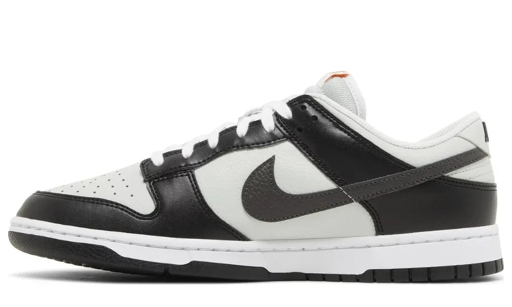 The Dunk Low Black Total Orange Mini Swoosh features Total Orange accenting against a black and white base. The shoe's upper is constructed from leather, which provides durability and comfort. The toebox includes perforated detailing that improves breathability, allowing air to circulate to keep the feet fresh. The midsole is made of hard foam, providing exceptional comfort, support, and shock absorption. A rubber outsole offers adequate traction and stability, providing support and grip to the wearer.