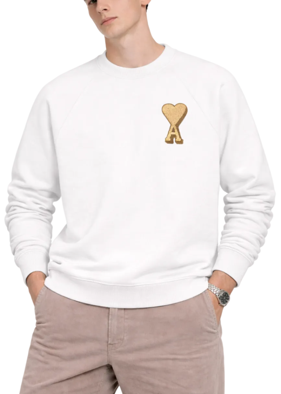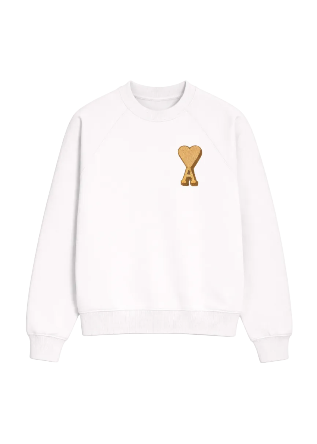 Ami de Coeur sweatshirt in thick, unbrushed fleece. Unisex product . Boxy fit. Raglan sleeves . Contrasting Ami de Coeur terry patch. Tone-on-tone "ami" embroidery below the back neckline. Center back length 61cm (size XS). Center back length 65cm (size M).