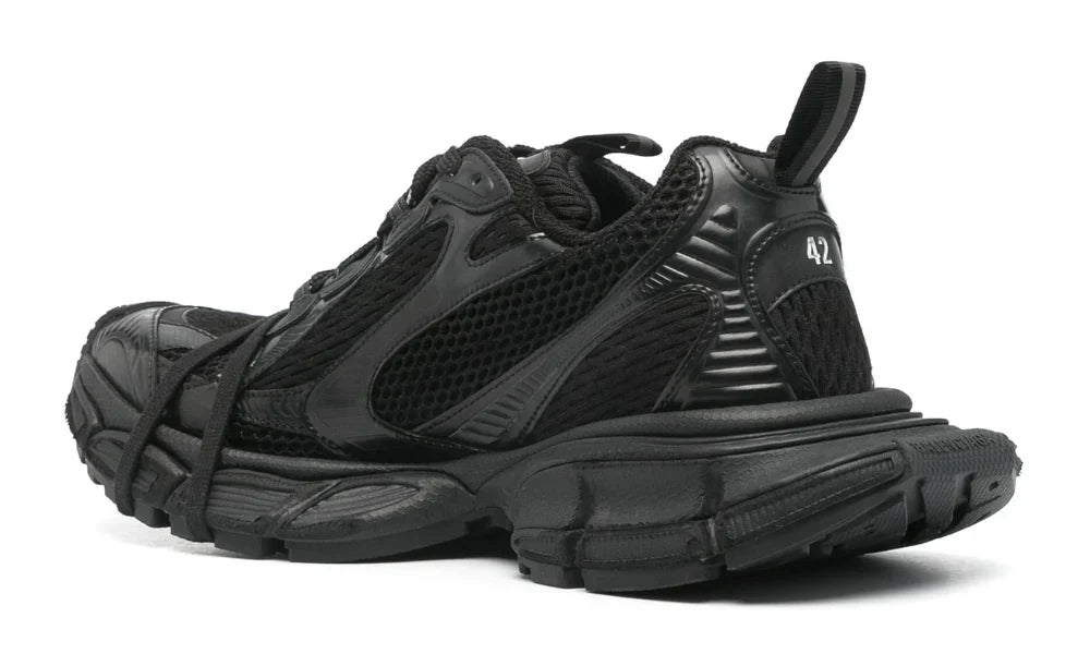 Elevate your athleisure game with these 3XL Extreme Lace sneakers from Balenciaga, featuring a new look with a statement lace wrap-around detail. Crafted from mesh and polyurethane, this chunky style includes worn-in effects, embossed sizing on the upper and heel, 3XL rubber branding on the tongue with reflective details, and the Balenciaga logo at the toe and heel